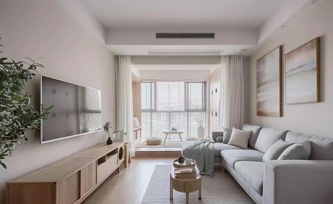 全屋主要是原木色+白+灰,采用颜色饱和度较低的搭配