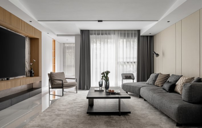 客厅吊顶我们采用了异形,缓解室内梁的层高压抑问题,同时也能将室内的层次感做得更加丰富。