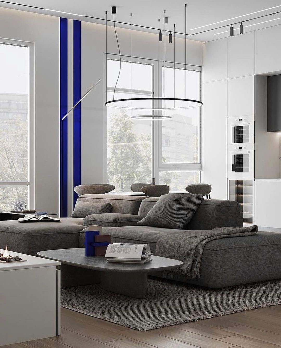 客餐厨其实在同一空间中,但因为只用了黑白灰三种颜色,让他看起来干净清爽。