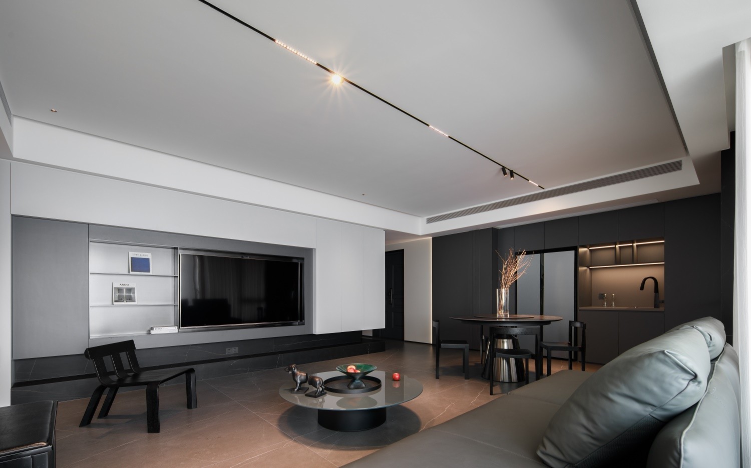 三户户型,业主喜欢飘逸而自由的风格,最终敲定现代风设计。