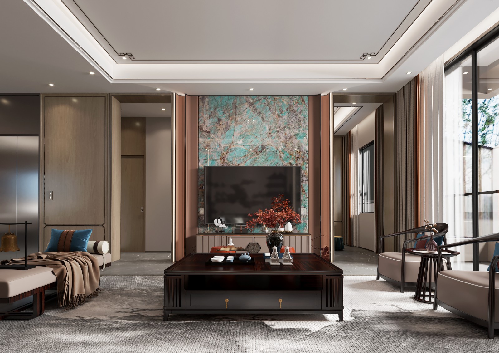 简洁大气的布局 淡雅而柔和的色彩,浅色木质的元素 养眼的色调,打造出自然舒适的休憩空间。