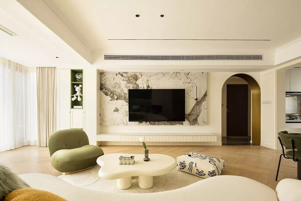 电视背景墙采用了石材,法式气息更浓