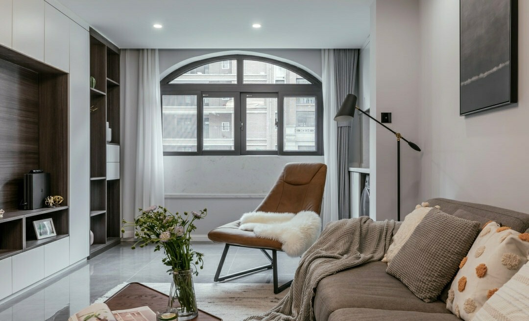 主卧延续小哥哥的想法,还是她说的性冷淡的想法床头背景墙刷了简单的浅灰色涂料,没有多余的修饰。