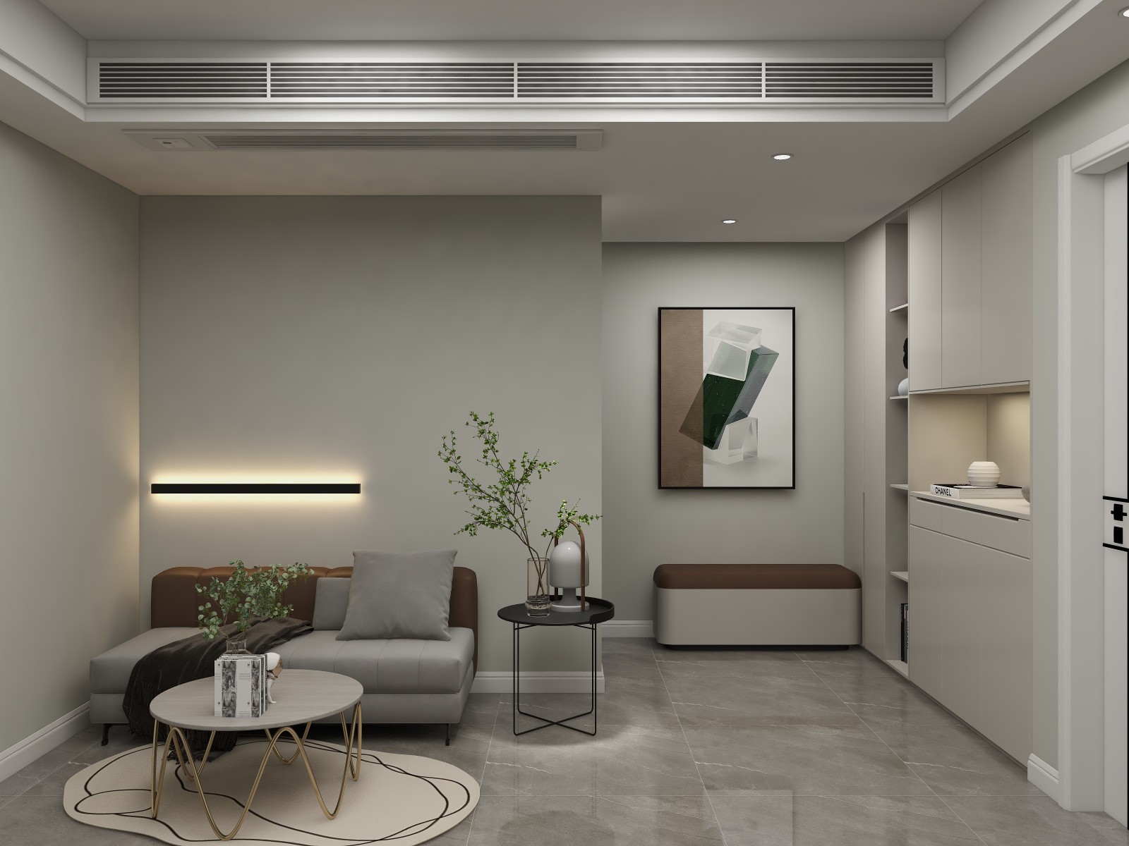 进门处做了玄关,做了一排鞋柜,旁边放了换鞋凳,出门换鞋就方便多啦。