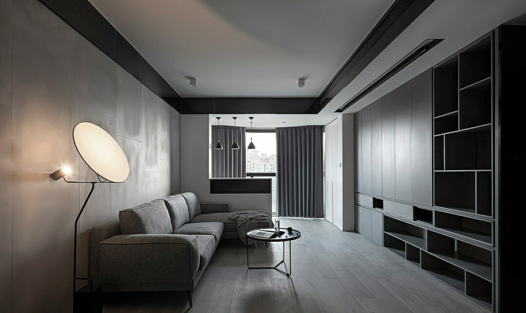 转角布艺沙发搭配充满纤细美感的圆形茶几,不经意间勾勒出空间感,简约又不失格调。