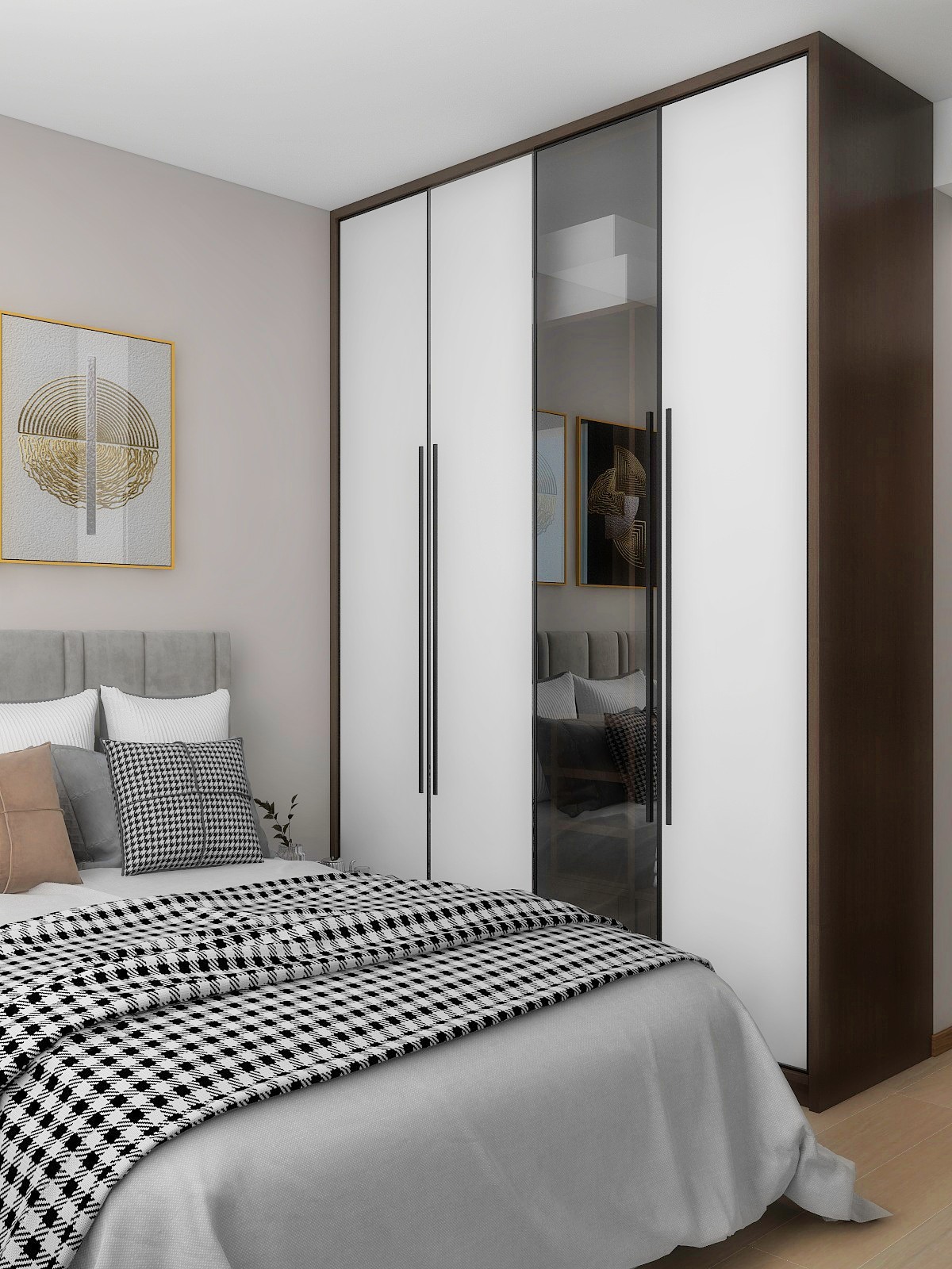 主卧采用原木色地板工资拼接