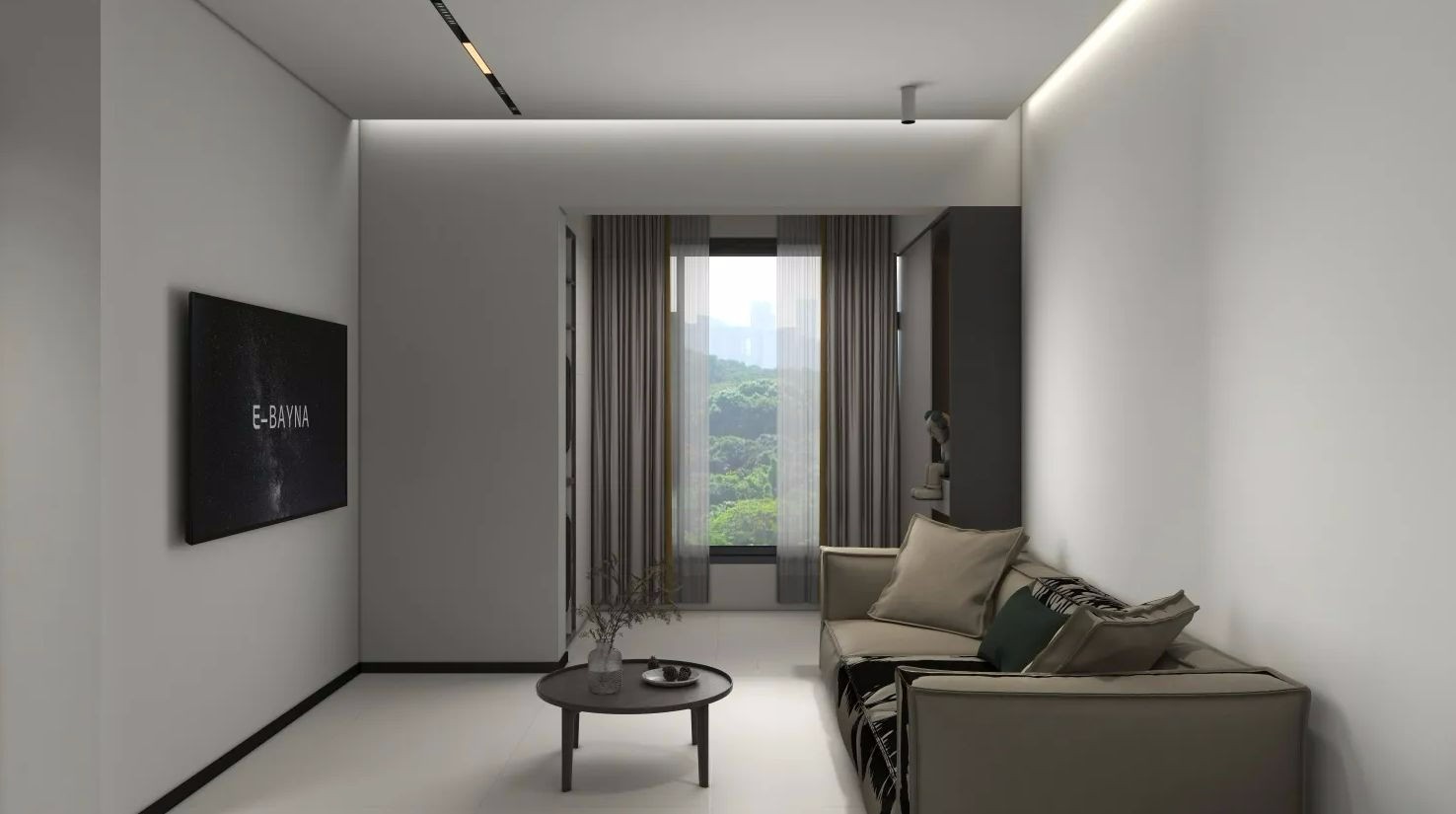 新房毛坯,整体风格为现代极简风,色调多采用于黑白灰