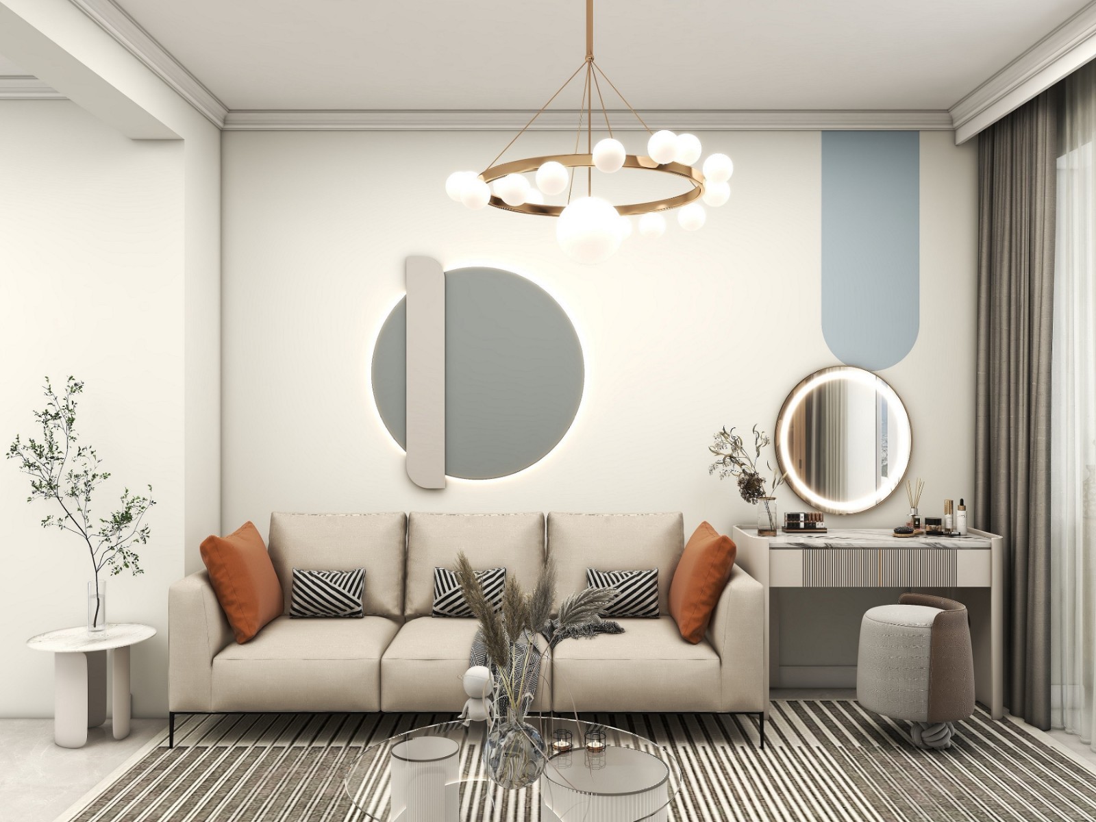 标准卧室也是用一个奶油风 定制柜加上一个书桌