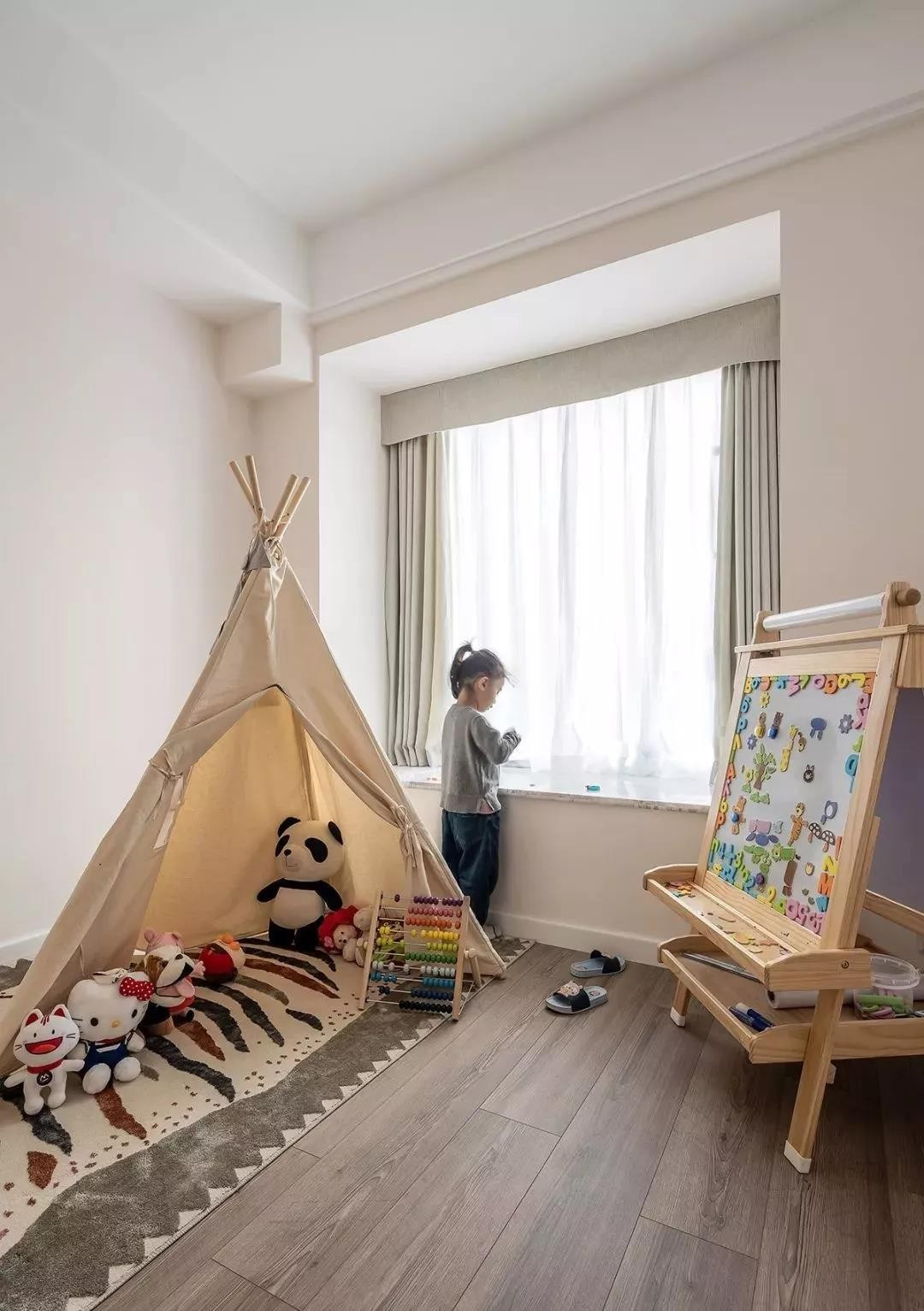 小黑板、小帐篷 还有卡通的玩偶 这个儿童房童趣满满