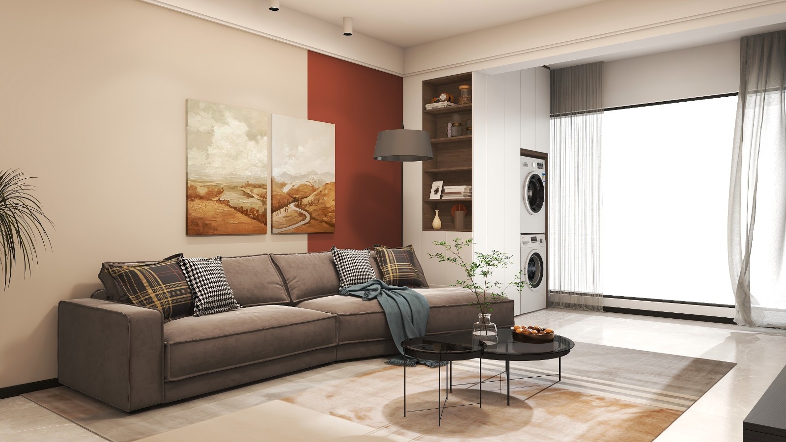 因为生活阳台空间不够,所以将洗衣机与烘干机移至景观阳台。