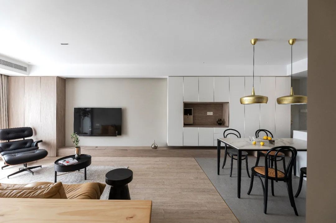 客厅整体做LDK开放式布局,通透明亮,看上去有大平层的既视感。