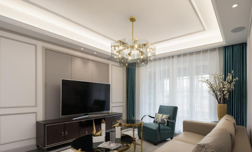 客厅,顶面边吊加电视背景墙。