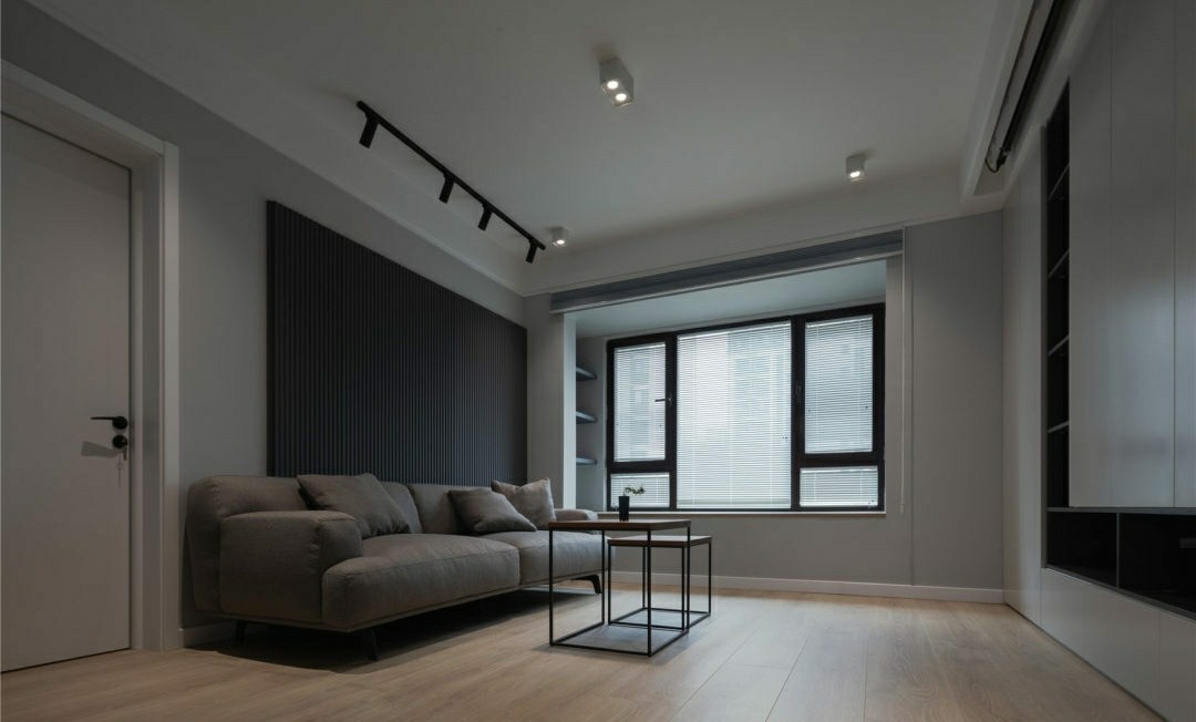 直线吊顶搭配无主灯设计,拉升视觉层高,屋内视野更显开阔。实木地板温和舒适,提升空间整体温度。