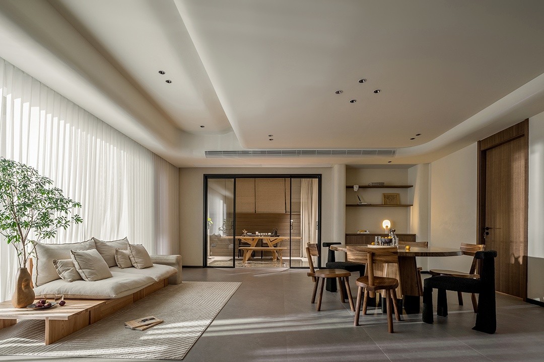 客厅简单而不失设计,桌椅的摆放和沙发的位置,整体以舒适文艺为主。