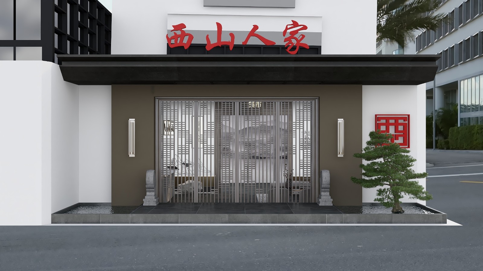 门头区域用了苏州特有的门当来进行修饰,保留西山人家的整体特色。