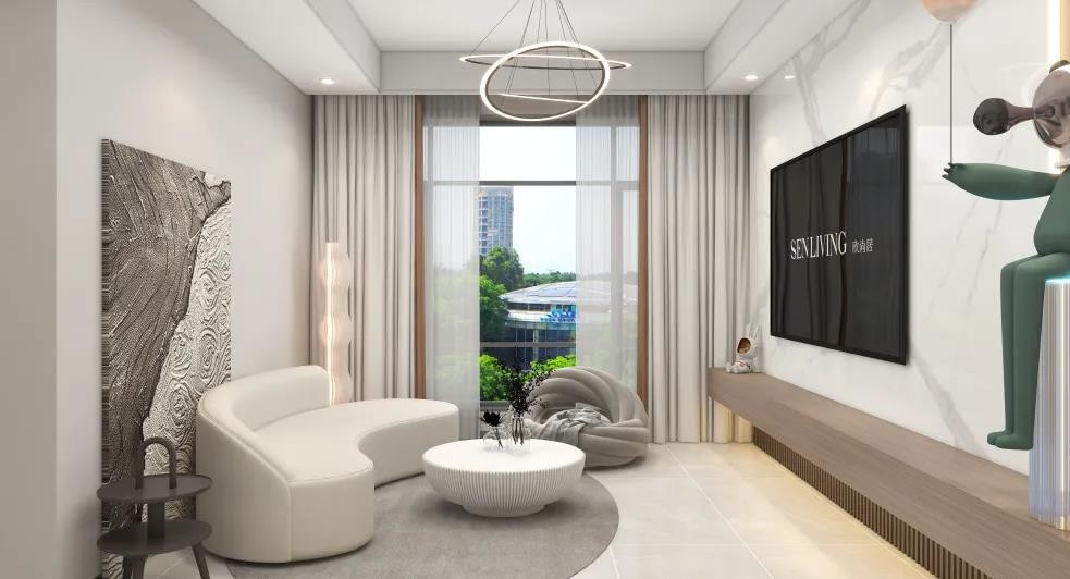 电视柜做悬浮的,方便打扫,电视背景墙做石材的很大气