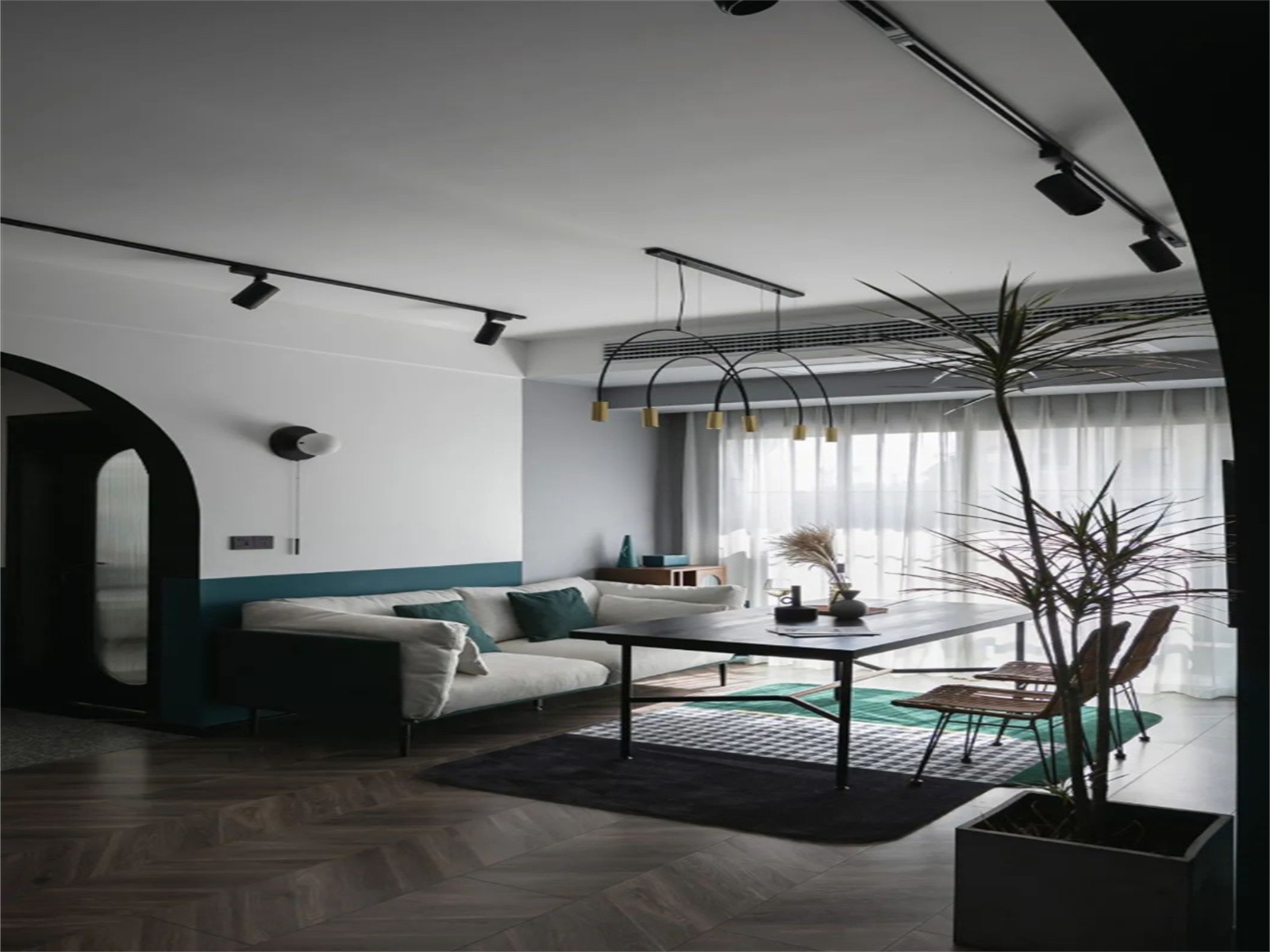 打破传统客厅布局,将客餐厅功能合并,沙发与餐桌椅相对而放,互动性也更加密切