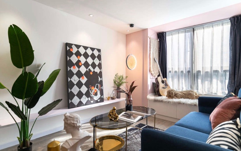 将蓝灰+粉色的组合带入到家居设计之中。