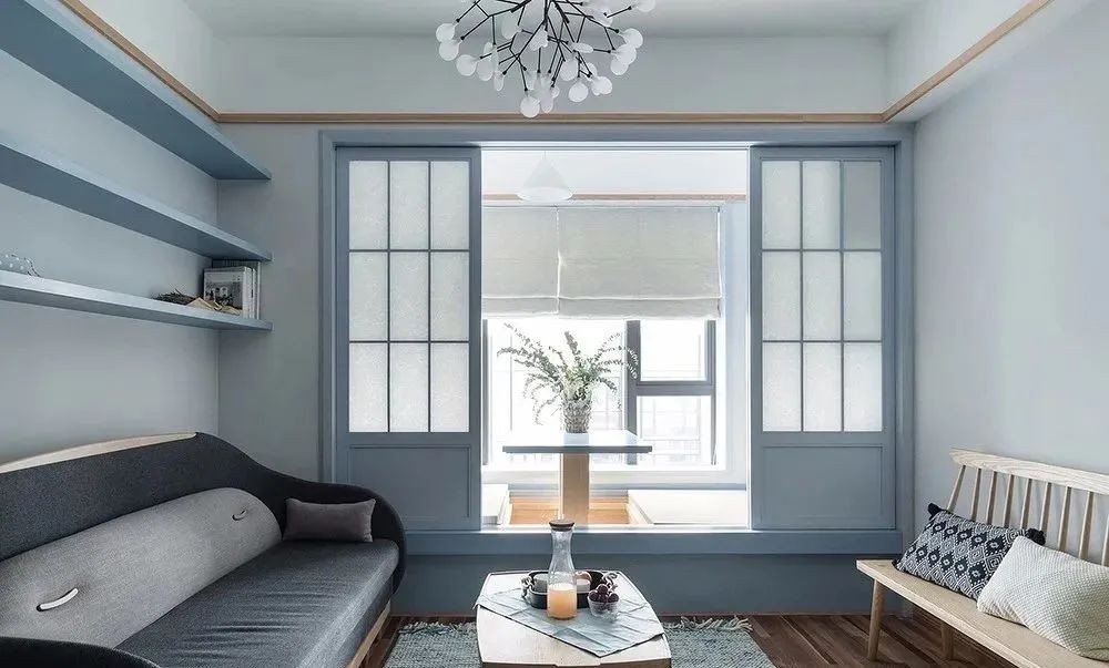 淡雅的蓝色系在留白和木质元素的混合中,绽放出如新鲜空气般让人呼吸都觉得轻松舒适的感受。