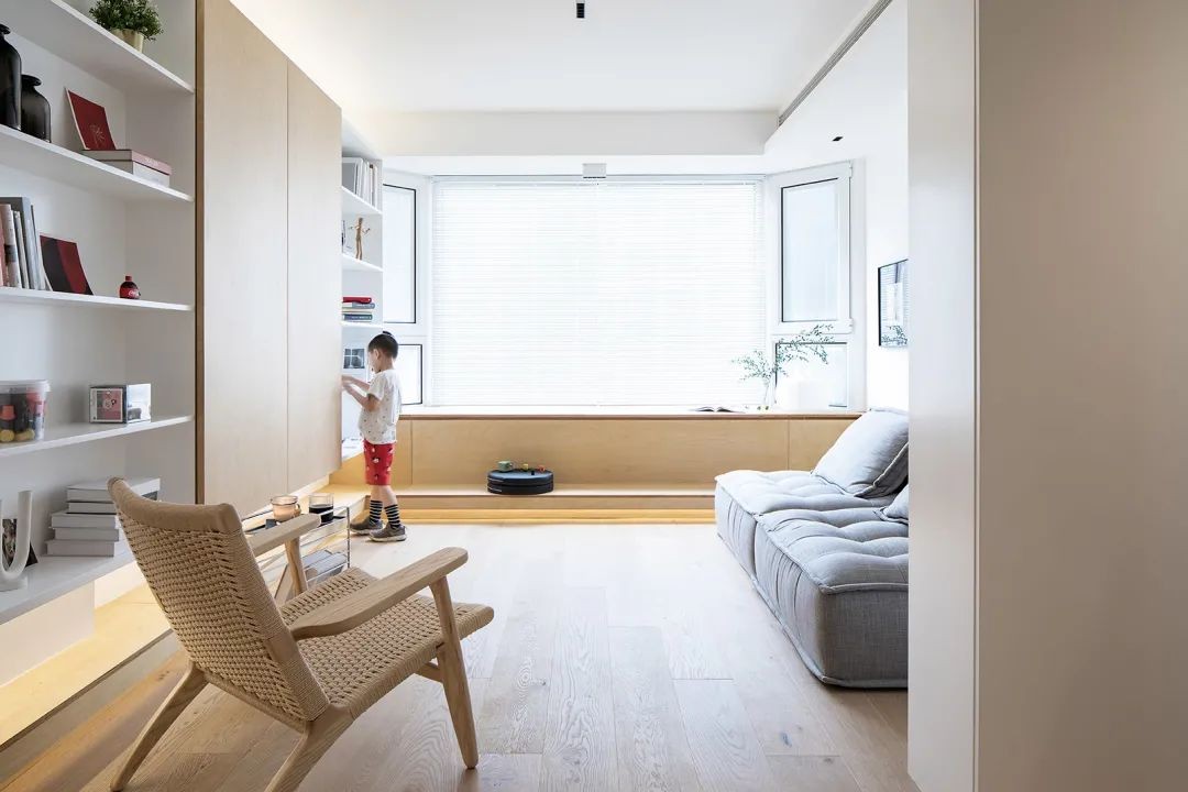 客厅不大而家里人较多,沙发如果选择常规三人位很占空间,日常生活中人们一般也不会紧挨着排排坐,所以我们最终放弃围合式沙发,转而选择了无扶手的款式。