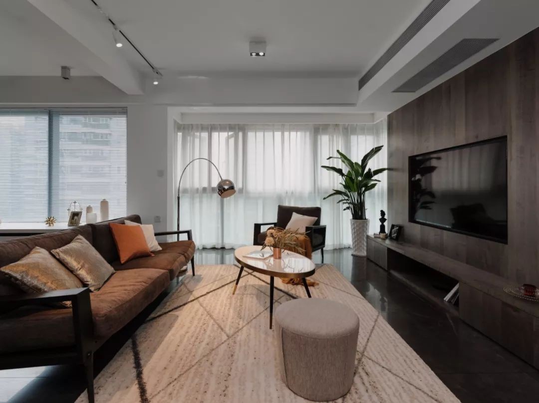 客厅选择了质感柔软的家具,在带来温馨、舒适的感觉之余,又与冷峻的水泥地砖进行中和,展现了工业风特有的雅痞质感,呈现现代风与工业风混搭出的独特美感。
