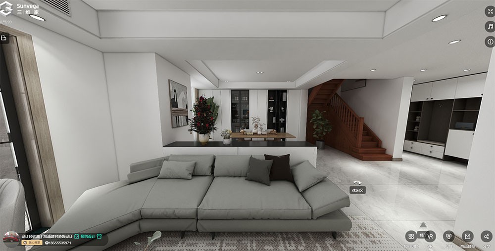 此户型本身是上下层的设置,所以一楼空间大多为公共活动区域,又是一个占了面积的优势可以尽情发挥的设计佳作