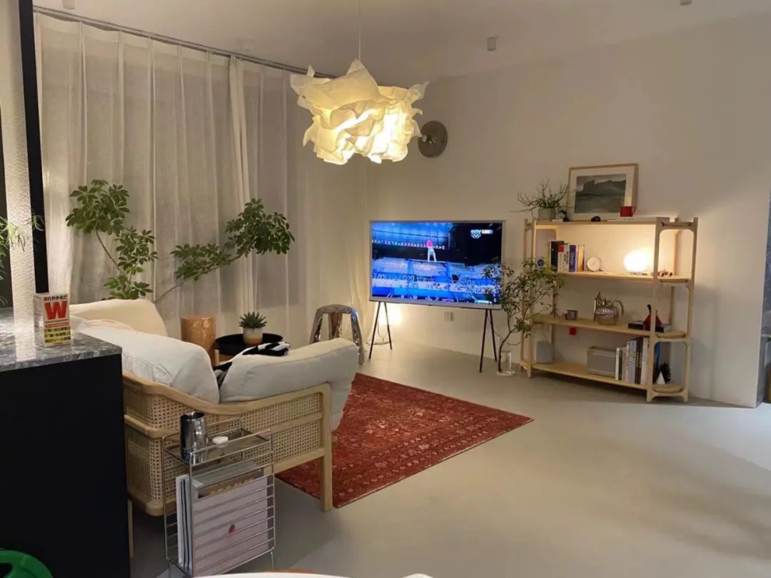 电视不再挂上墙,电视下面还堆放了好多绿植、兔子摆件~画框电视也是屋主强烈推荐的单品。