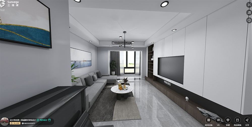 三房户型,厨房和餐厅空间给的比较少,所以在视觉上可能是客餐厅相对紧凑,但是设计合理之后,又有了通透一说
