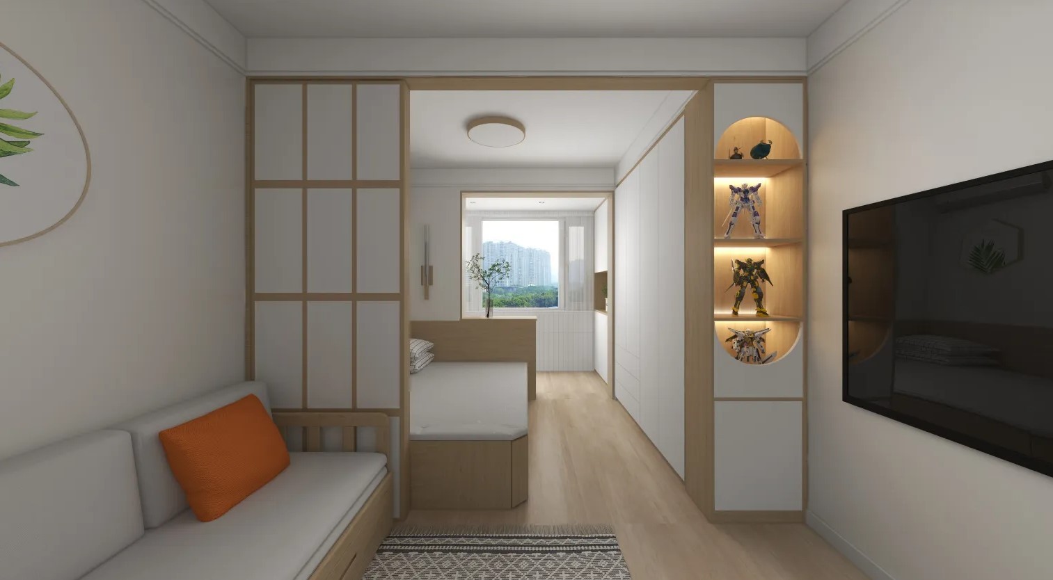 日式原木的风格使得整个空间亲近且自然,给人一种舒适的感觉。