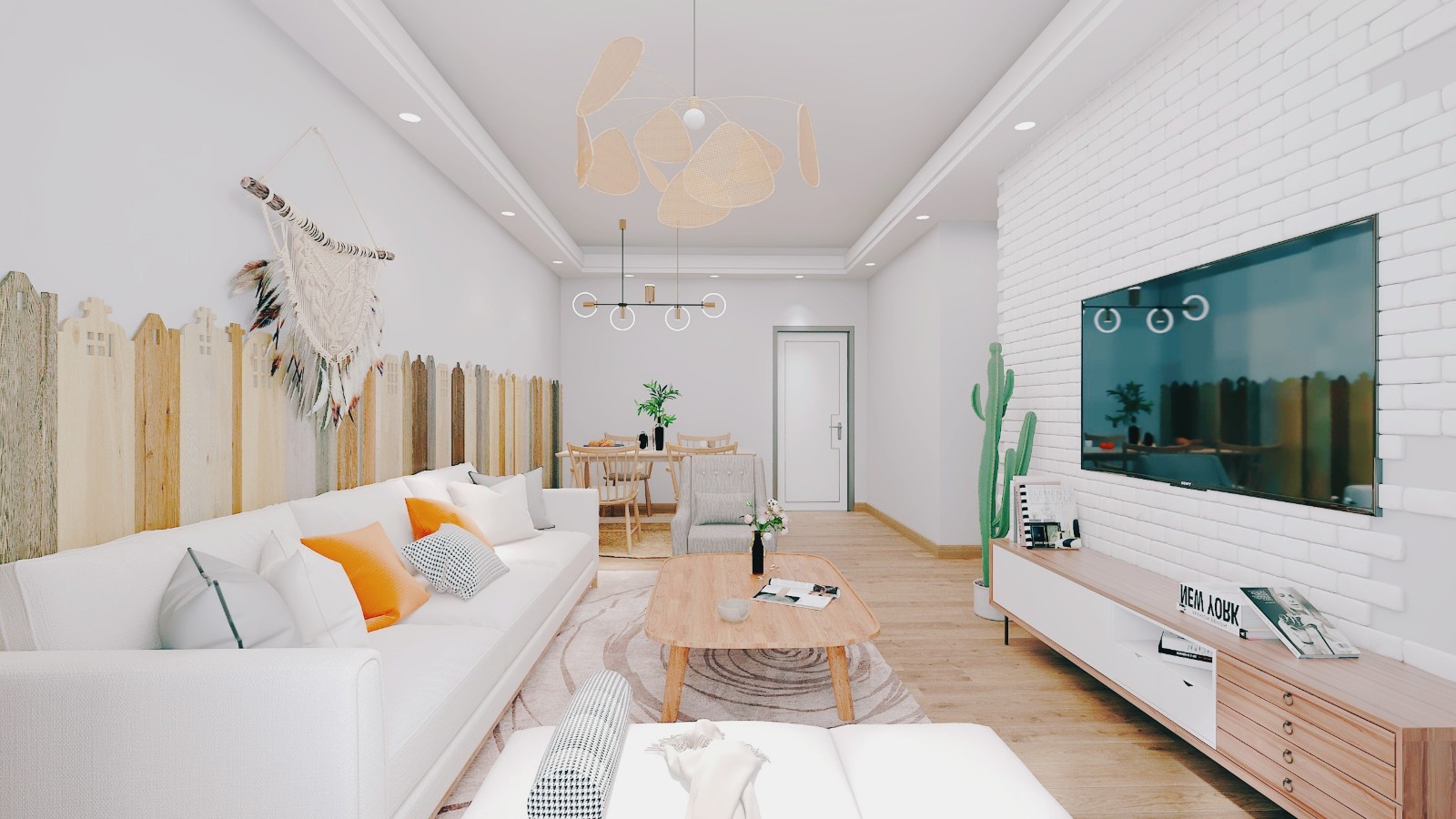柔软的色调搭配舒适的软装,整体呈现出小清新的氛围感,也是日式风格很重要的元素之一。