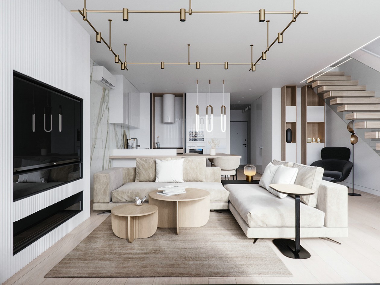 白色系的厨房是大胆的尝试,但确实有过目不忘的魅力! 大面积的白色迎合了客厅的氛围基调,避免了视觉上的混乱,显得空间干净纯粹。