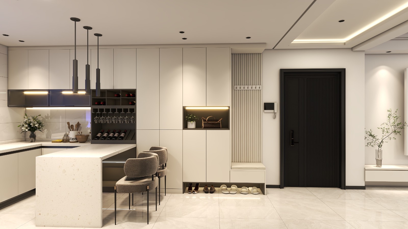 主是一对年轻夫妇,业主对空间结构有很墙的主观认识。对装饰内容也做了很多功课。在沟通了解到业主一定的需求。空间必须有吧台,吊顶要有突出效果,空间需要原木修饰表现。 本案对原有结构基本遵从客户意见基本不动,在内部空间进行切割划分