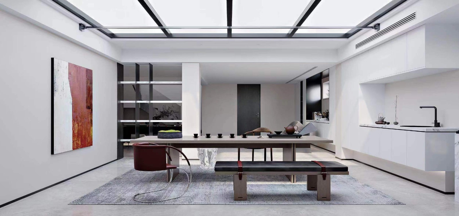 开放式厨房,颜色灯光配合完美