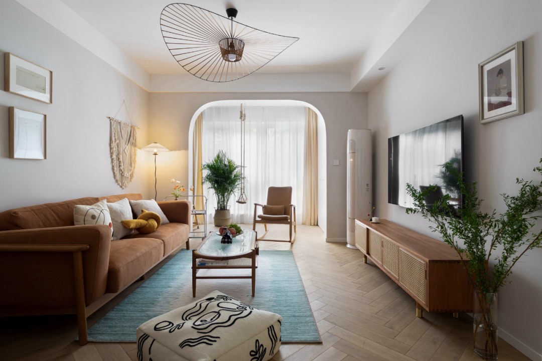 这是屋主的结婚新房,她喜欢自由惬意没有拘束的生活方式,希望在迈进玄关的那一刻就能放下所有疲惫。这里仿佛像她拥有的一方容器,承载和展示着内心所有的可能性,在等待中感受生活给予的美好。