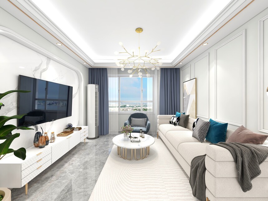 华美的客厅洋溢着娴静优美的气息,素洁轻盈的色线营造着浪漫的情趣,生活就本该如此无拘无束。初夏的晚风,带着枣花和月季花的幽香,飘进这间简朴而舒适的客厅