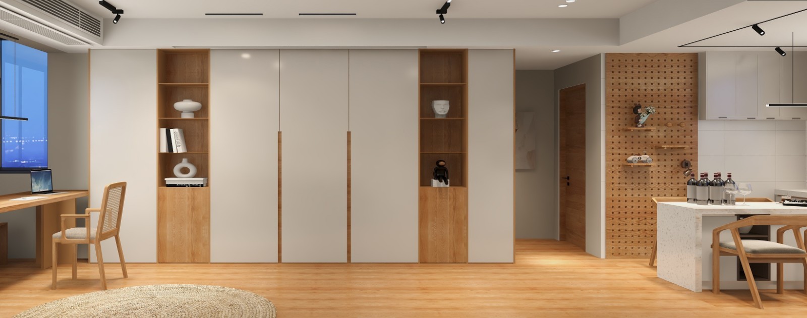 客户这套房子主要是小夫妻的一个小家,两个人都很喜欢原木风的感觉,所以一拍即合的出来了这套整体很原木的设计