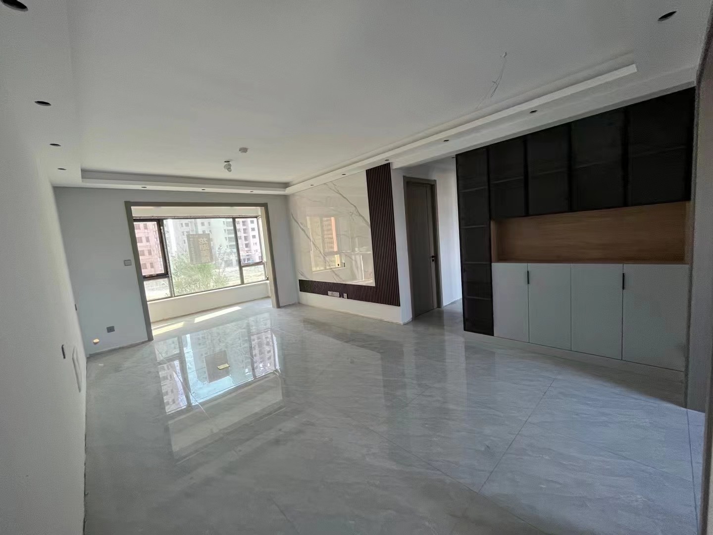 运用了回字型吊顶,电视墙运用了岩板.