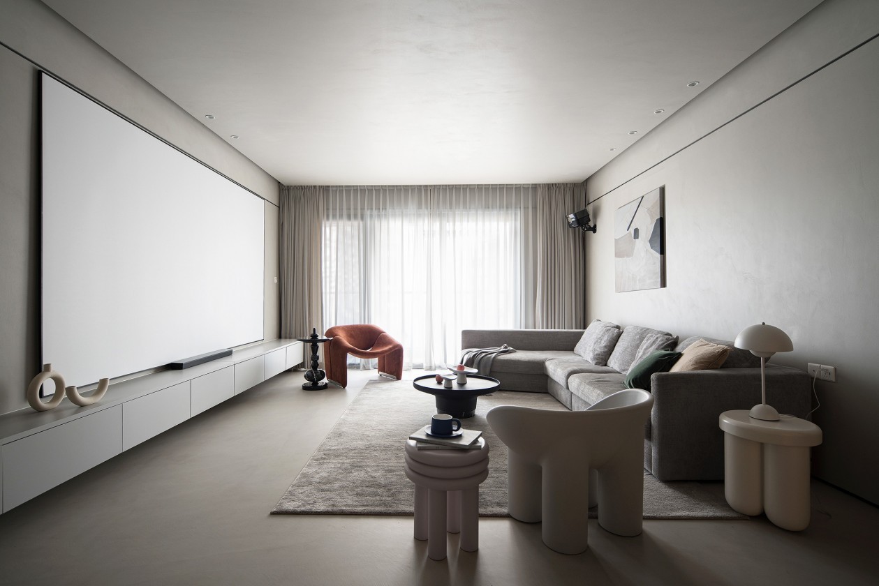 客厅舍弃繁杂的堆砌,以极简的设计手法打造出清新质感,细细品味,点缀之处都十分出彩,在整体通透的视觉效果上使人眼前一亮。不规则椅子,沙发上绿色、米白色抱枕,均为家里增添丝丝亮点。再铺上一张米色地毯,增加客厅层次感。