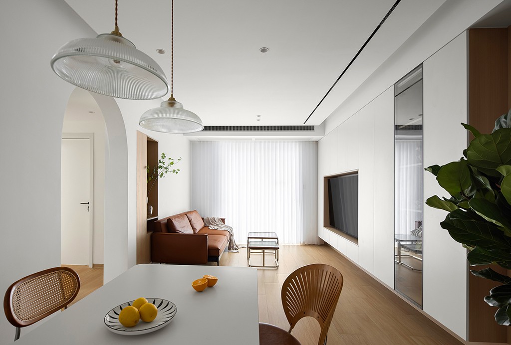 门洞加入了弧形设计,淡化直角尖锐,视觉美感柔和。