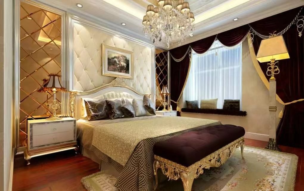 卧室天化吊顶暗藏灯带,烘托卧室的古典优雅。
