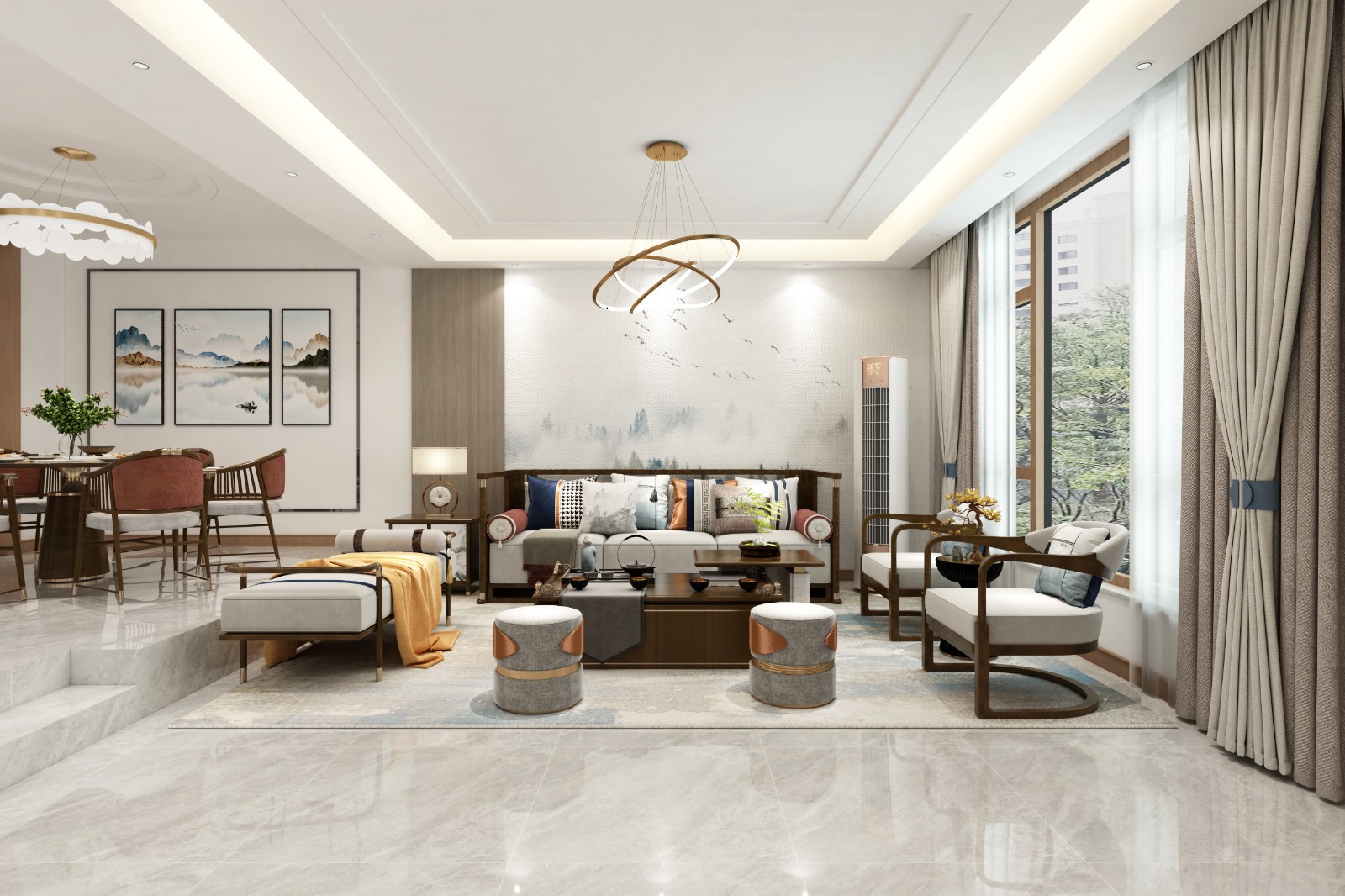 新中式风格,大面积刷白墙,灵感来自国画的留白手法;