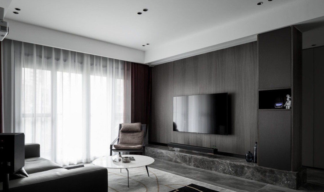 暗藏式灯带的存在,给灰色的背景墙带来了一丝暖意。