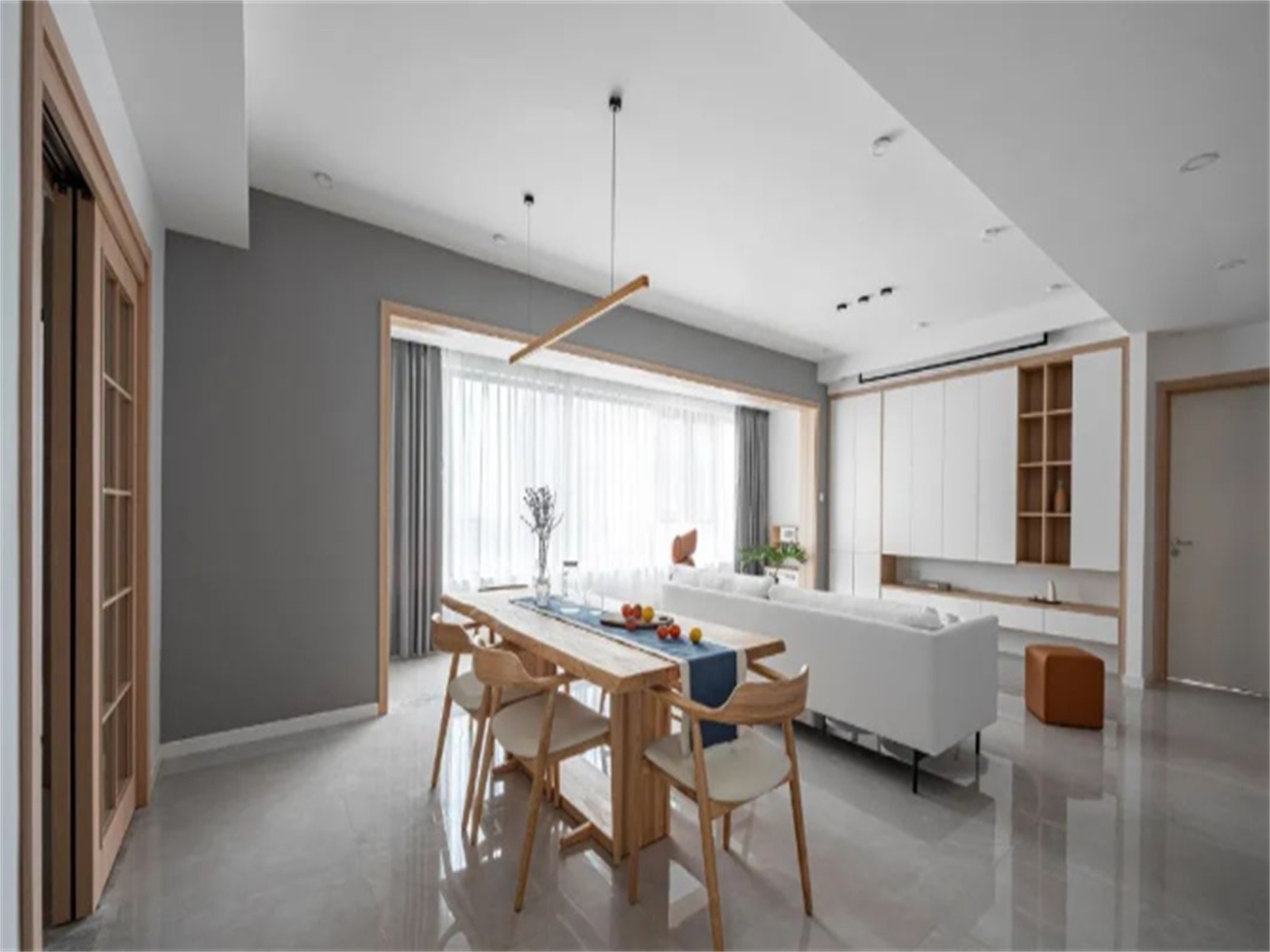本案业主是标准的三口之家,喜欢中式但不要中式的繁琐厚重,设计中式为骨现代做皮,整体现代风格的简洁造型,混搭一丝中式的典雅韵味,适当留白空间,色调以白色、灰色、木色呈现,在空间造型和色彩搭配上做减法