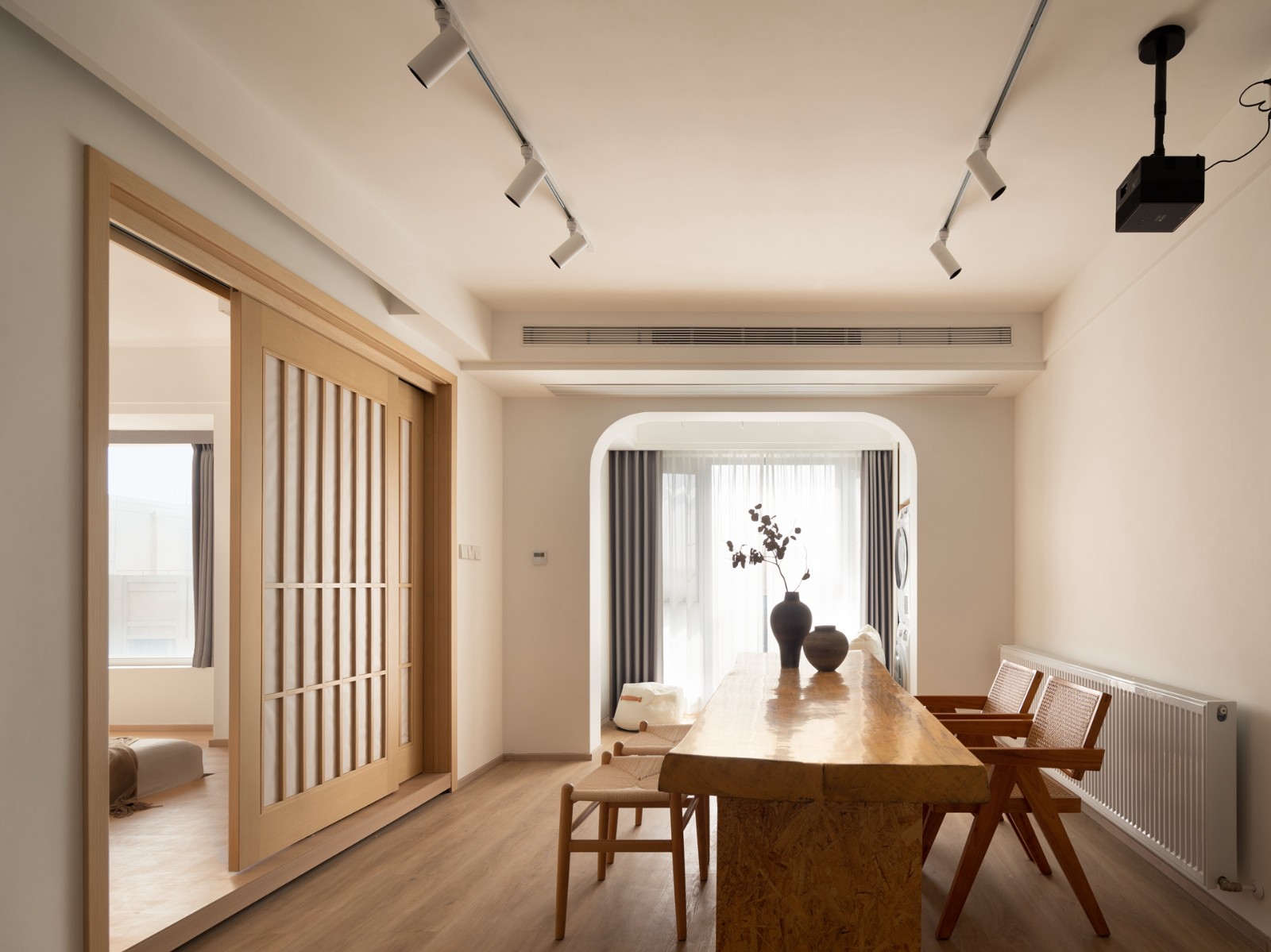 业主两人是一对年轻的夫妻,有个两岁的男宝宝,这套房子不常住,主要是周末来休息的短暂休息,所以在设计上尽可能的留大空间让小朋友玩爽,经过沟通,我们和屋主都有一个共同的目标,就是希望这个家的模样,它应该是放松的、治愈的,以日式原木风为主风格