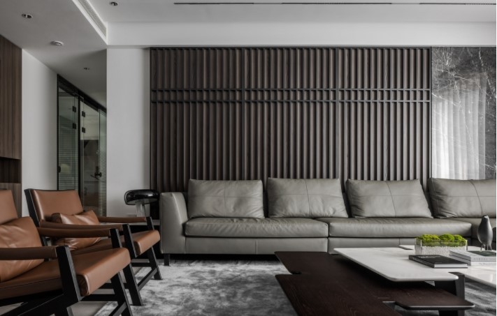 低饱和度的皮革沙发传达柔和的空间基调,而色彩跳脱的躺椅、不规则艺术茶几轻易破局,动态消解了传统中式风格的沉闷无趣,两种截然不同的审美语言和谐共生,荡出一份内敛奢雅的生活质感。