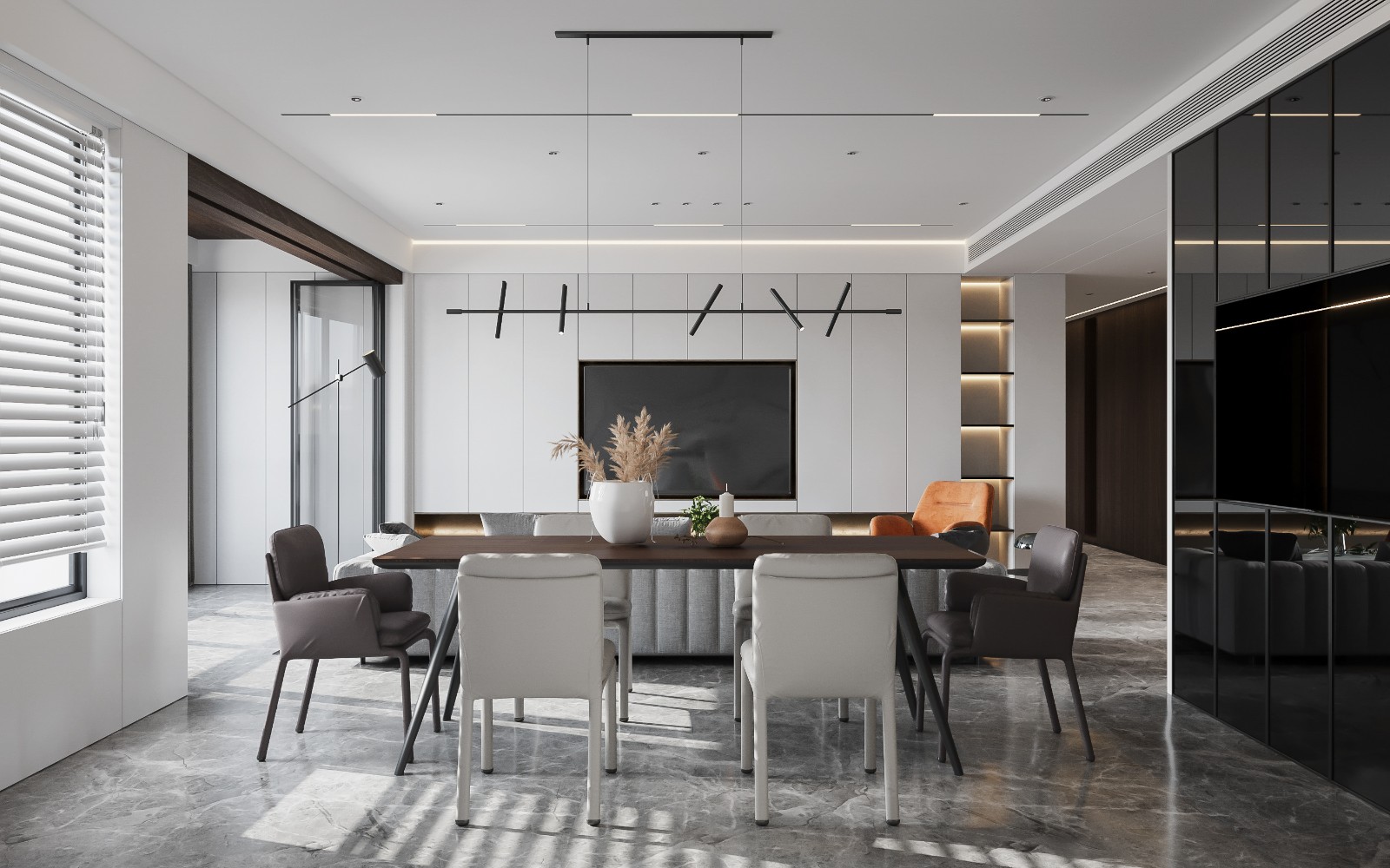 设计师通过对装修材料的精选,营造出一种精致有品的家具环境
