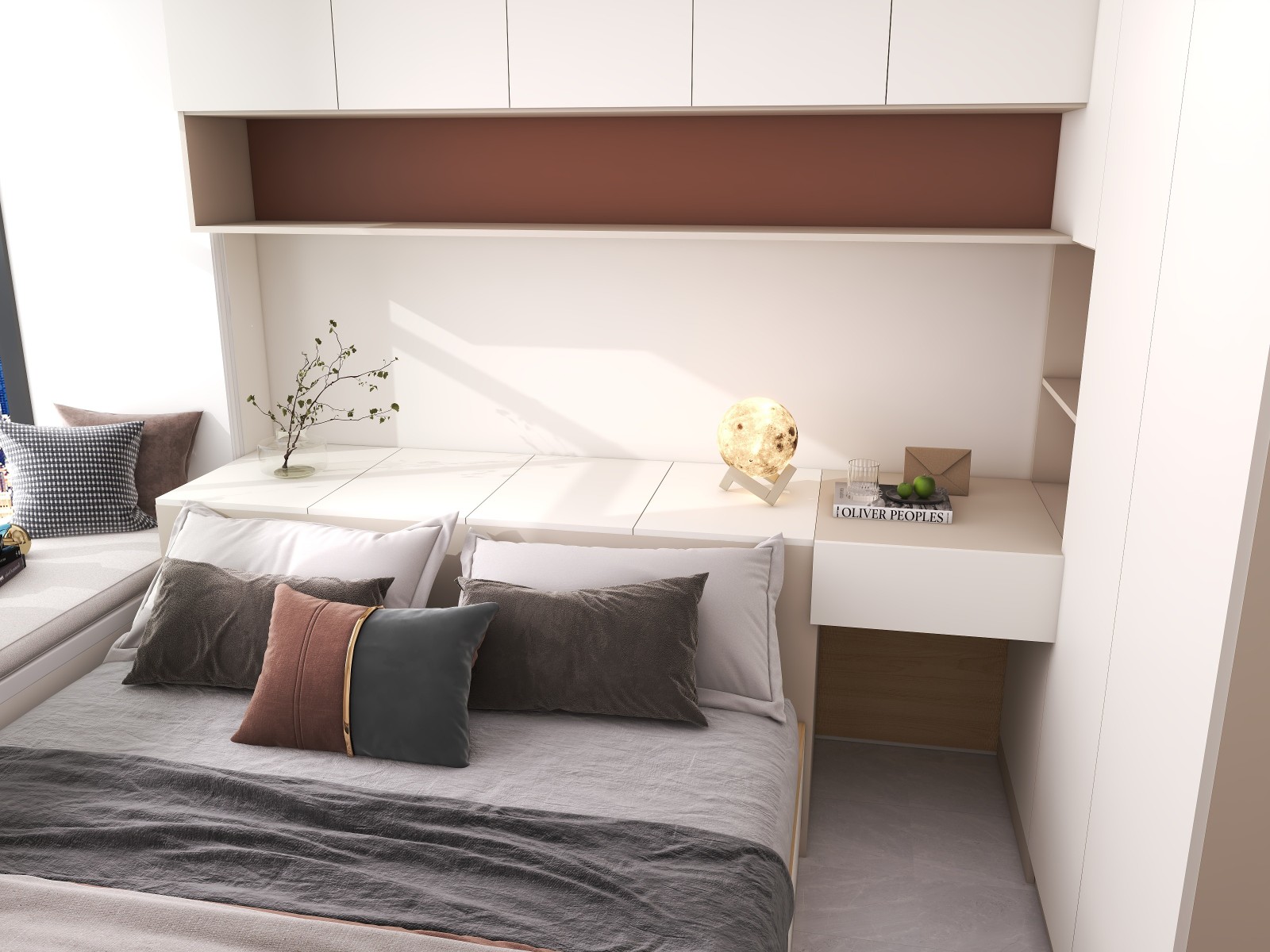 颜色上选用跳色处理,增加卧室的空间感。