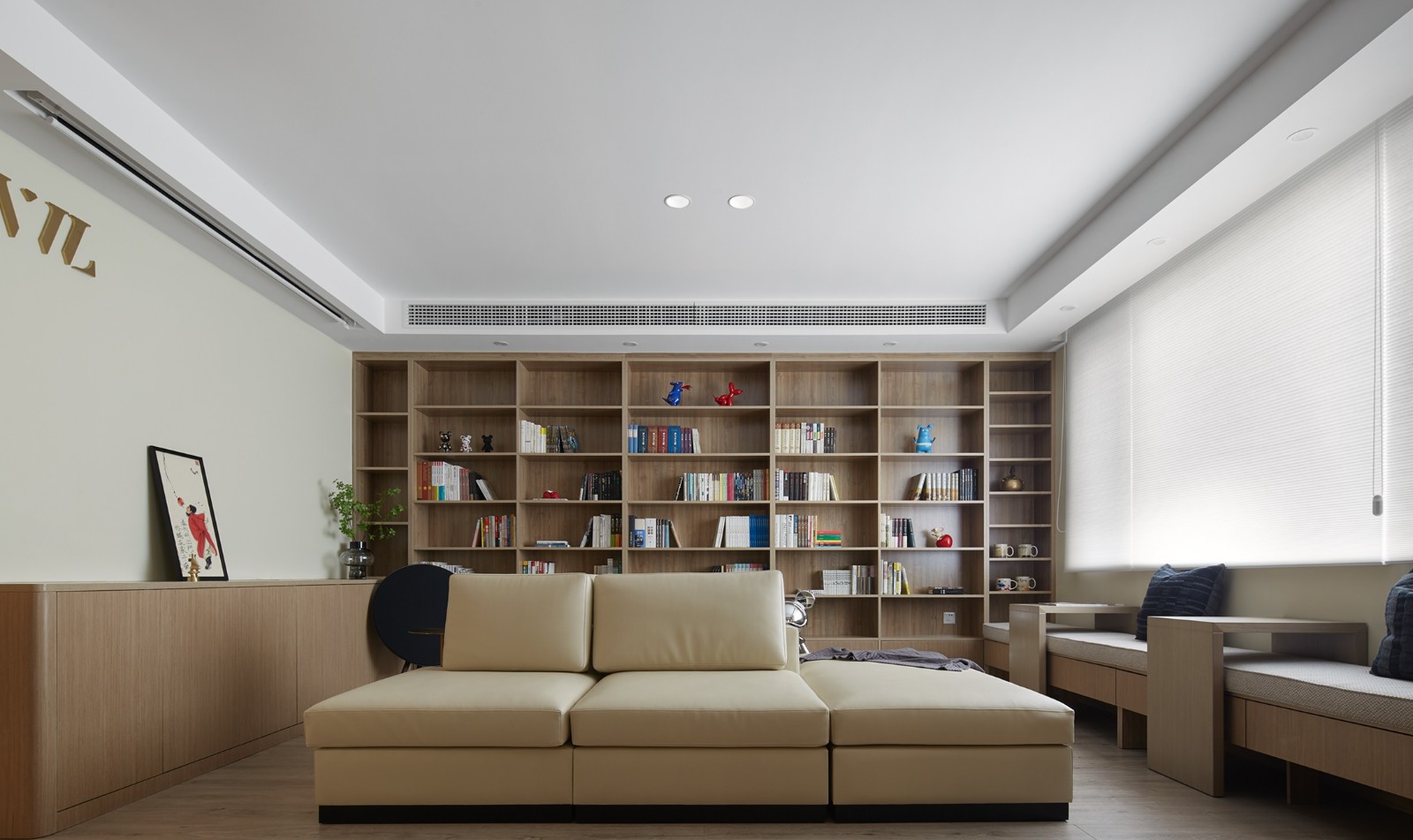 业主是一位大学教授,平常喜欢看书,夫妻两人带着自己可爱的大孙子,整体色调偏暖色,一进门右手边是厨房左手边是卫生间斜前方是我们的客厅,客厅留了一墙的柜子都用来收藏教授的宝贝书籍,因为孙子喜欢去电影院所以抛弃了传统的电视结合了现代的投影仪。开放式厨房和餐厅的融合更加宽阔,绿色的餐椅使空间更加活泼,书房里红色的休闲椅让孩子也喜欢在书房里玩耍,卧室整体色系白色木纹,整个卧室经过软装搭配让空间显得更加充实饱