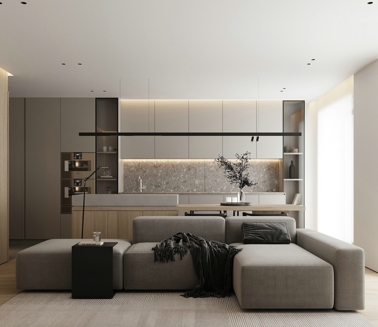 餐厅岛台一体设计,是家里的点睛之笔,它可以包揽用餐、料理台、收纳三种功能。