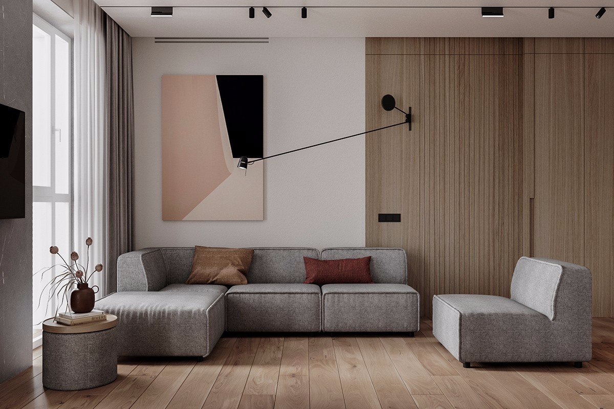 在这个项目中,一个完整的生活空间是这个计划背后的基本力量。 公寓使用暴露的混凝土作为中性基础,然后通过不同的饰面甚至特殊材料强调一些区域。
